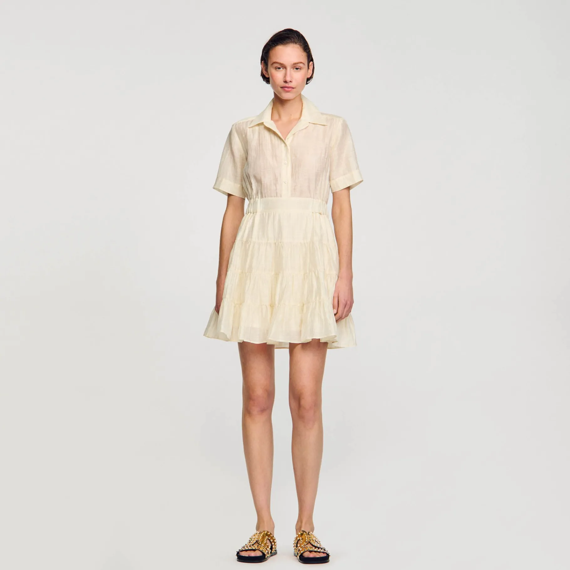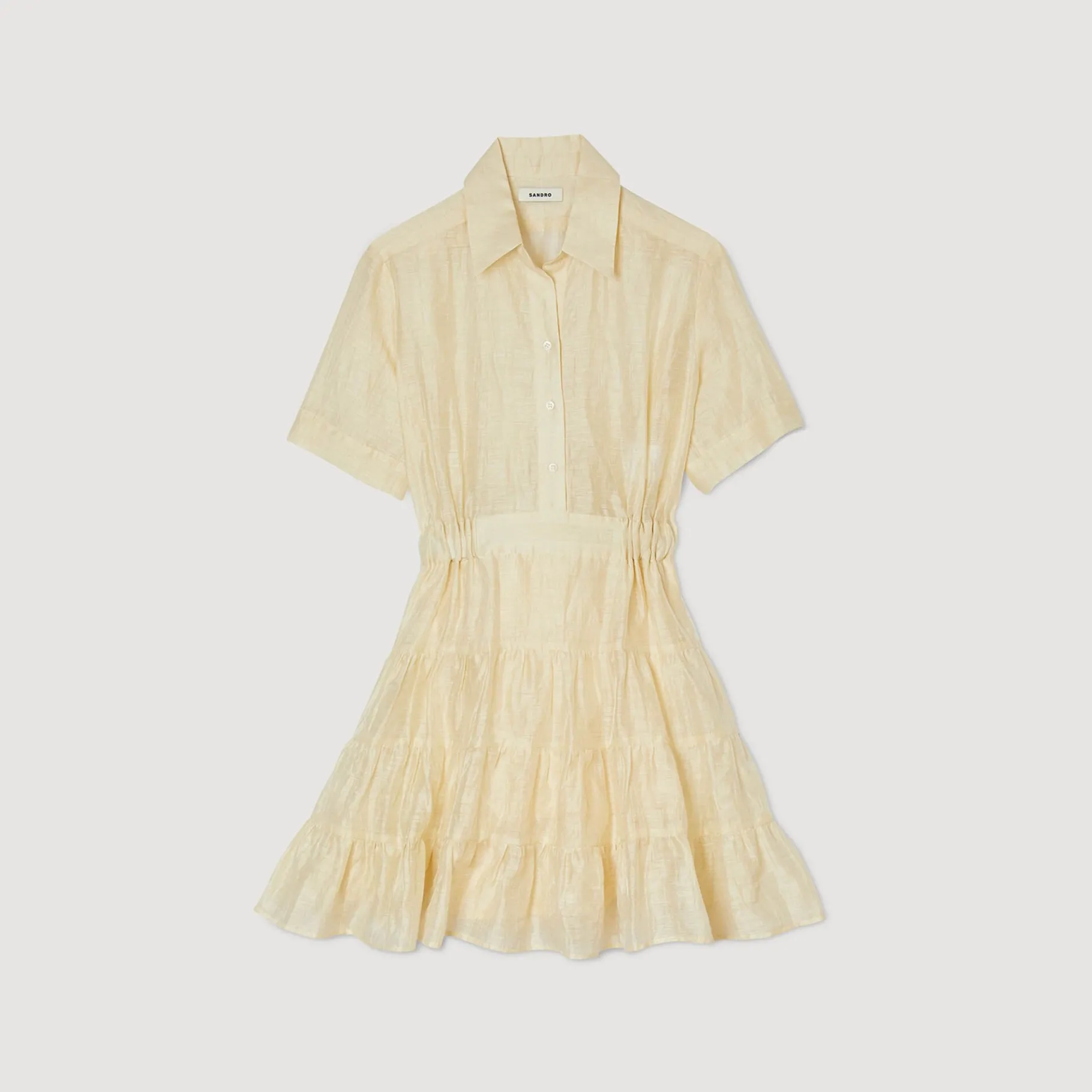 Vestido Corto Con Cuello Camisero Y Escote En V, Tapeta De Botones En La Parte Superior Y Falda Evasé Y Avolantada.