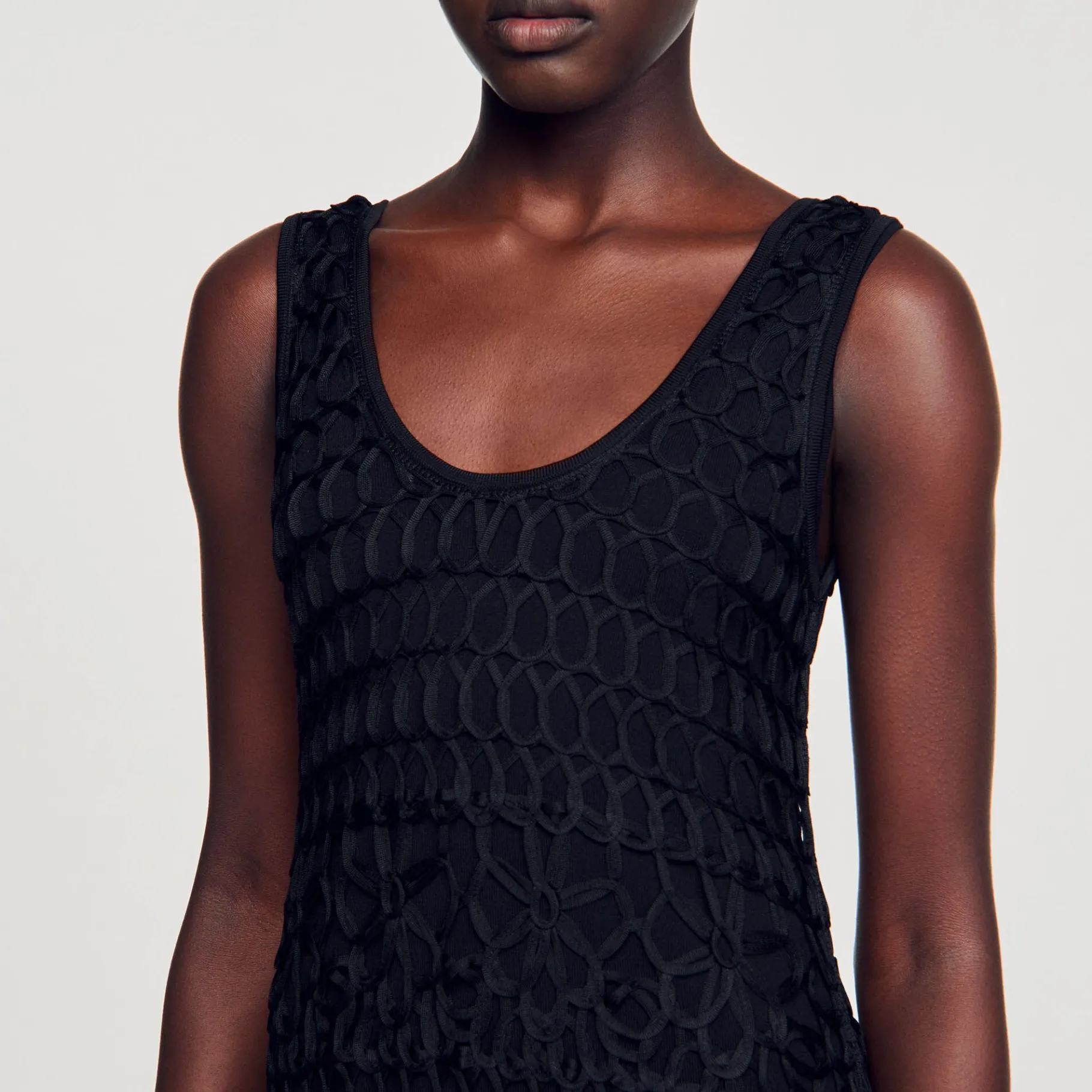 - Vestido Largo De Punto De Croché Sandro Femme