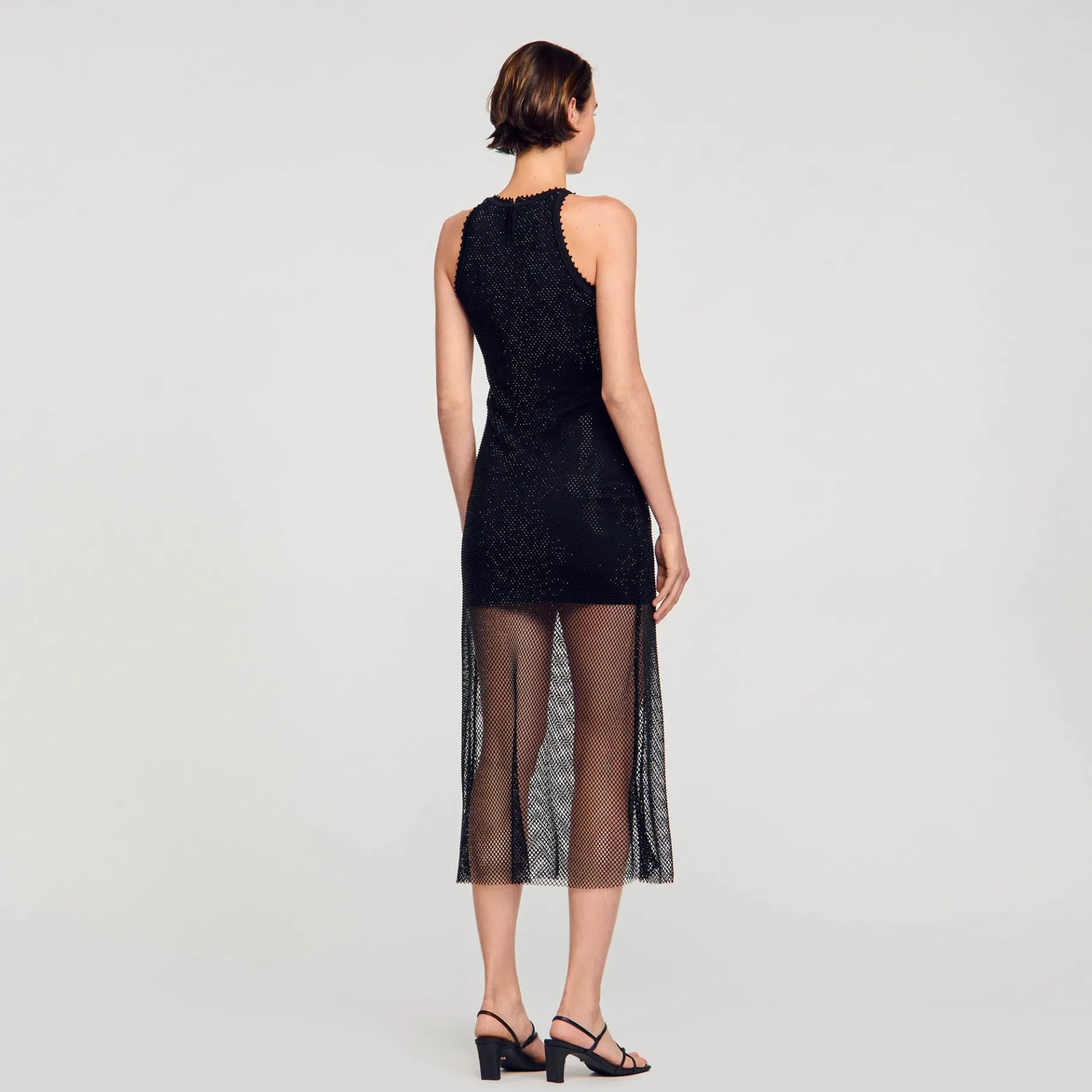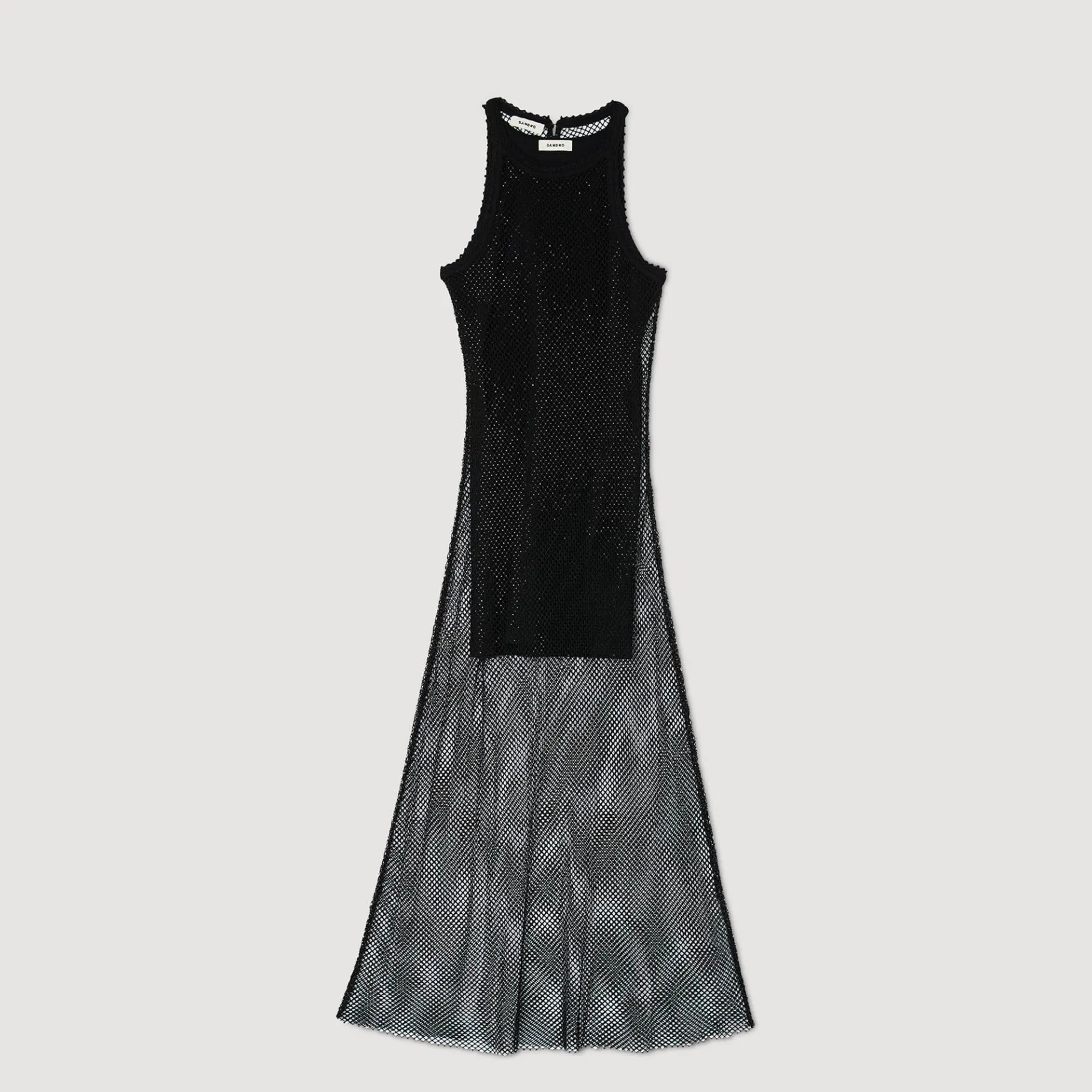 Vestido Largo Entallado De Tirantes Finos De Redecilla Brillante, Ligeramente Evasé En La Parte Inferior.