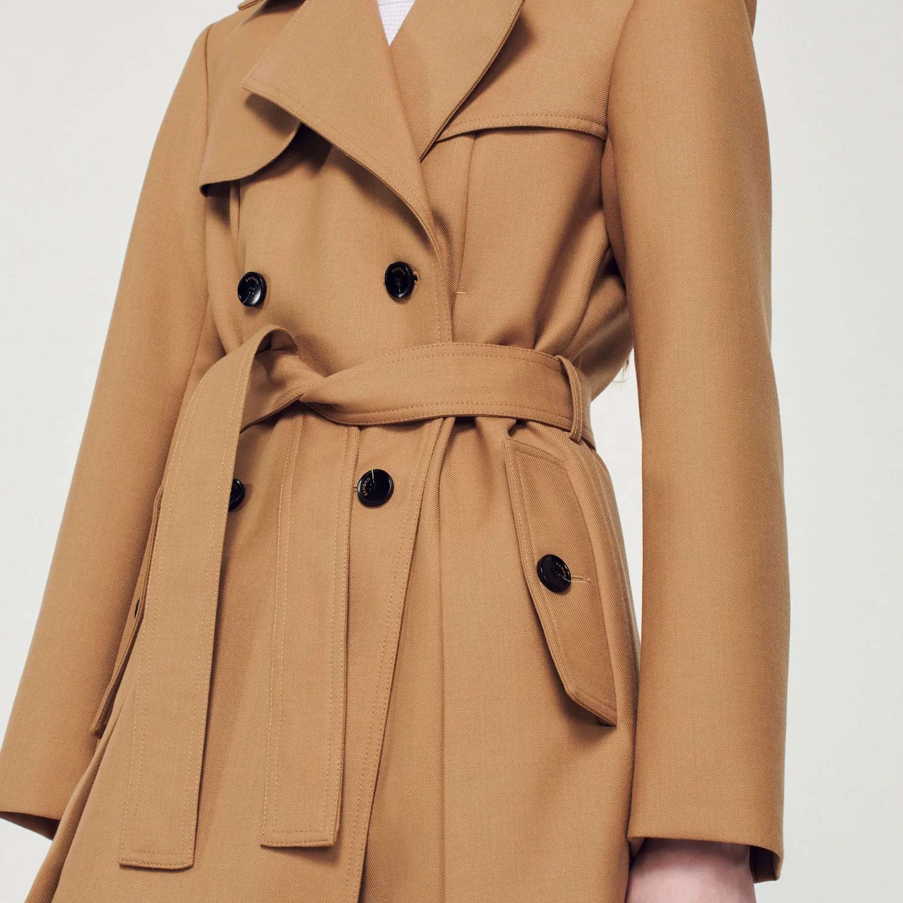 Abrigo Largo Estilo Gabardina De Mezcla De Lana.• Abrigo Sandro De Mujer • Cuello Amplio Con Solapas • Bolsillos C…
