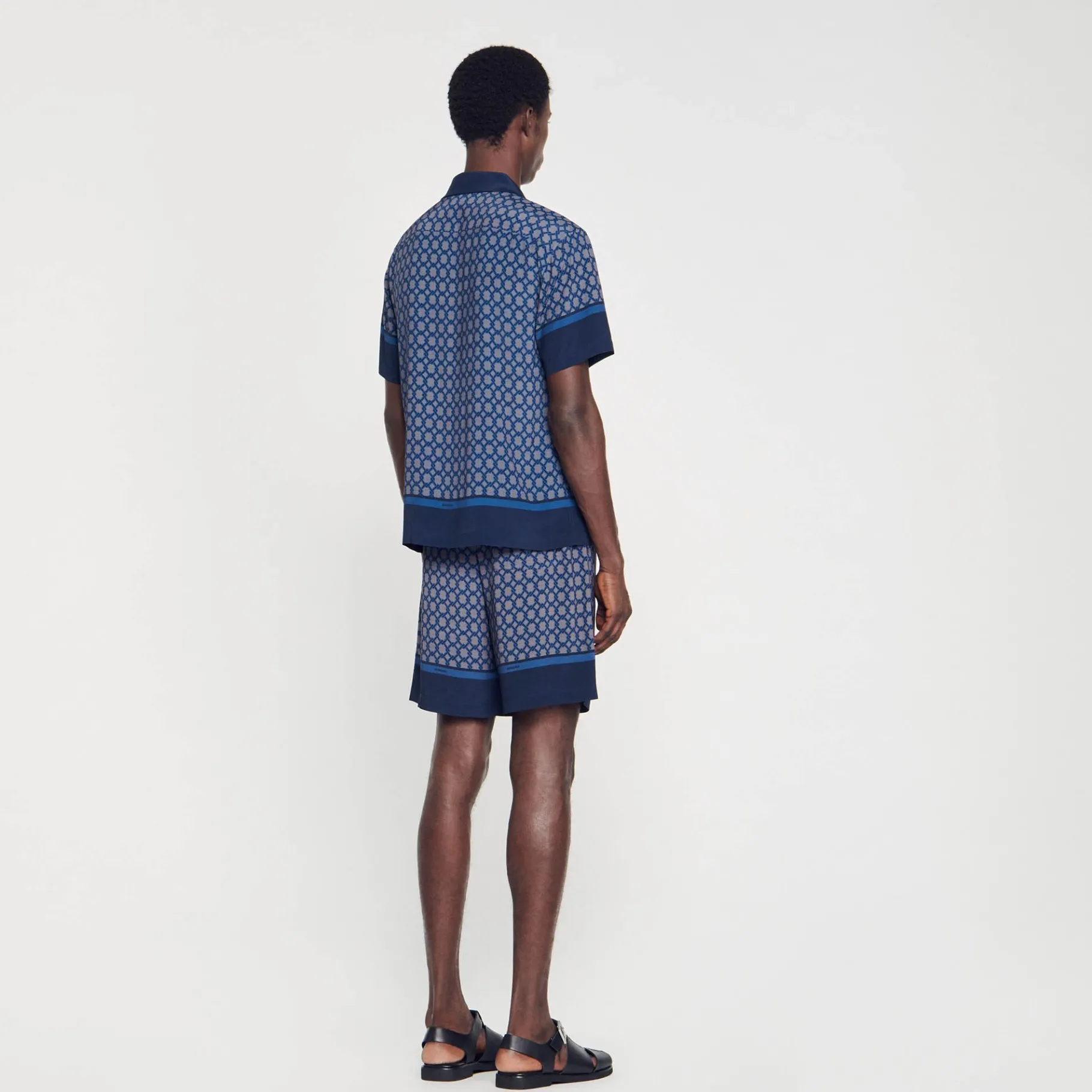 Camisa De Manga Corta Con Cuello Italiano, Cierre De Botones Y Estampado Cross. Camisa Sandro Hombre Cuello Italiano Man…