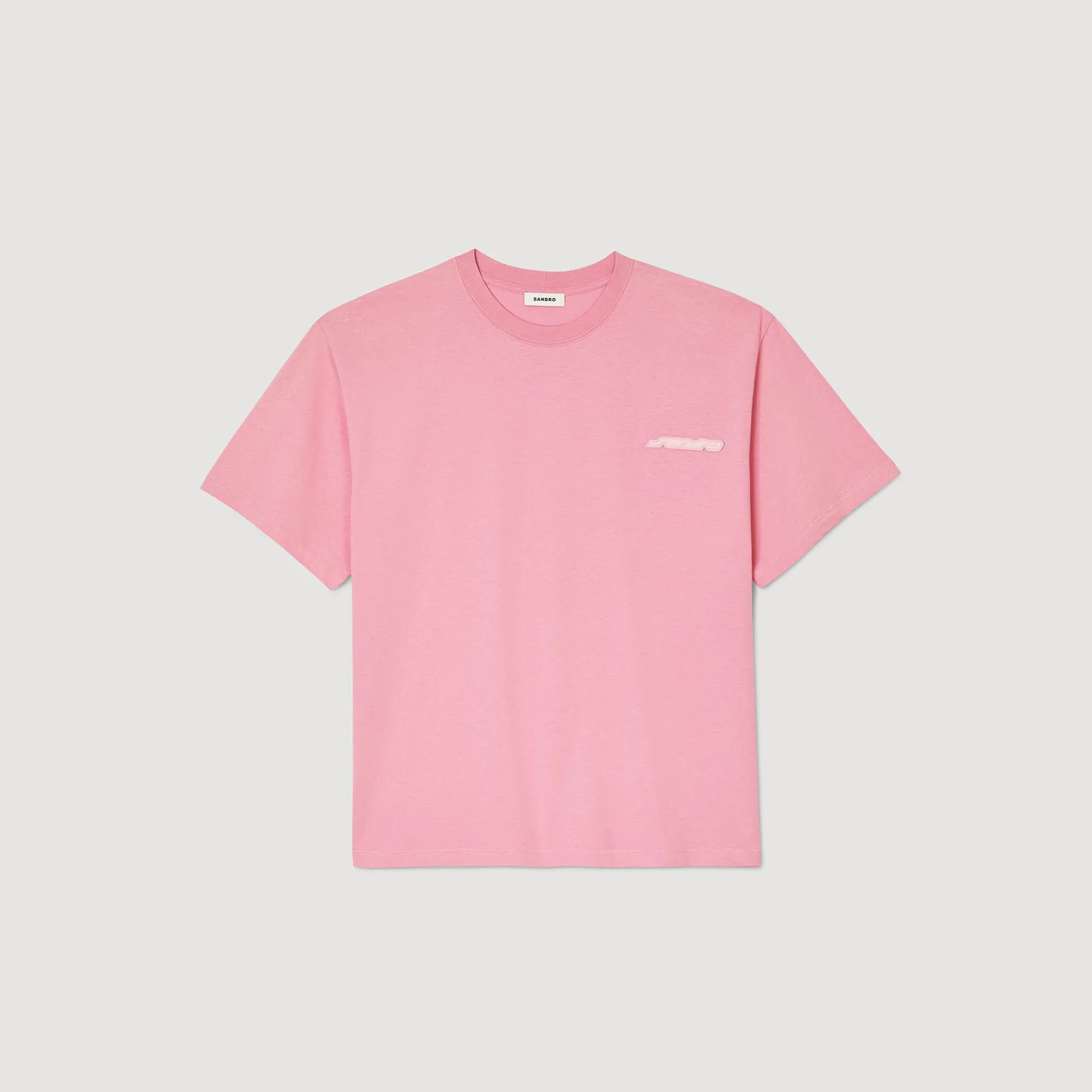 Camiseta De Algodón Con Cuello Redondo Y Manga Corta, Con Detalle De Logotipo Sandro De Goma En El Pecho.