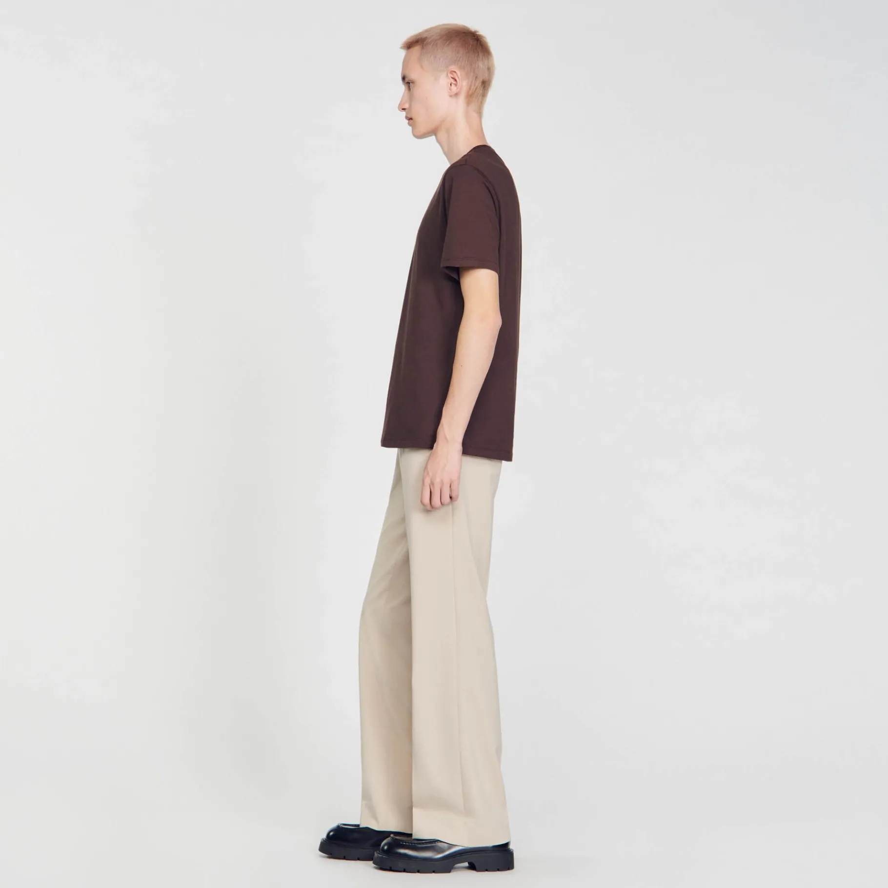 Camiseta De Cuello Redondo Y Manga Corta Con Un Bordado Sandro. Camiseta Sandro Hombre Cuello Redondo De Canalé Manga C…