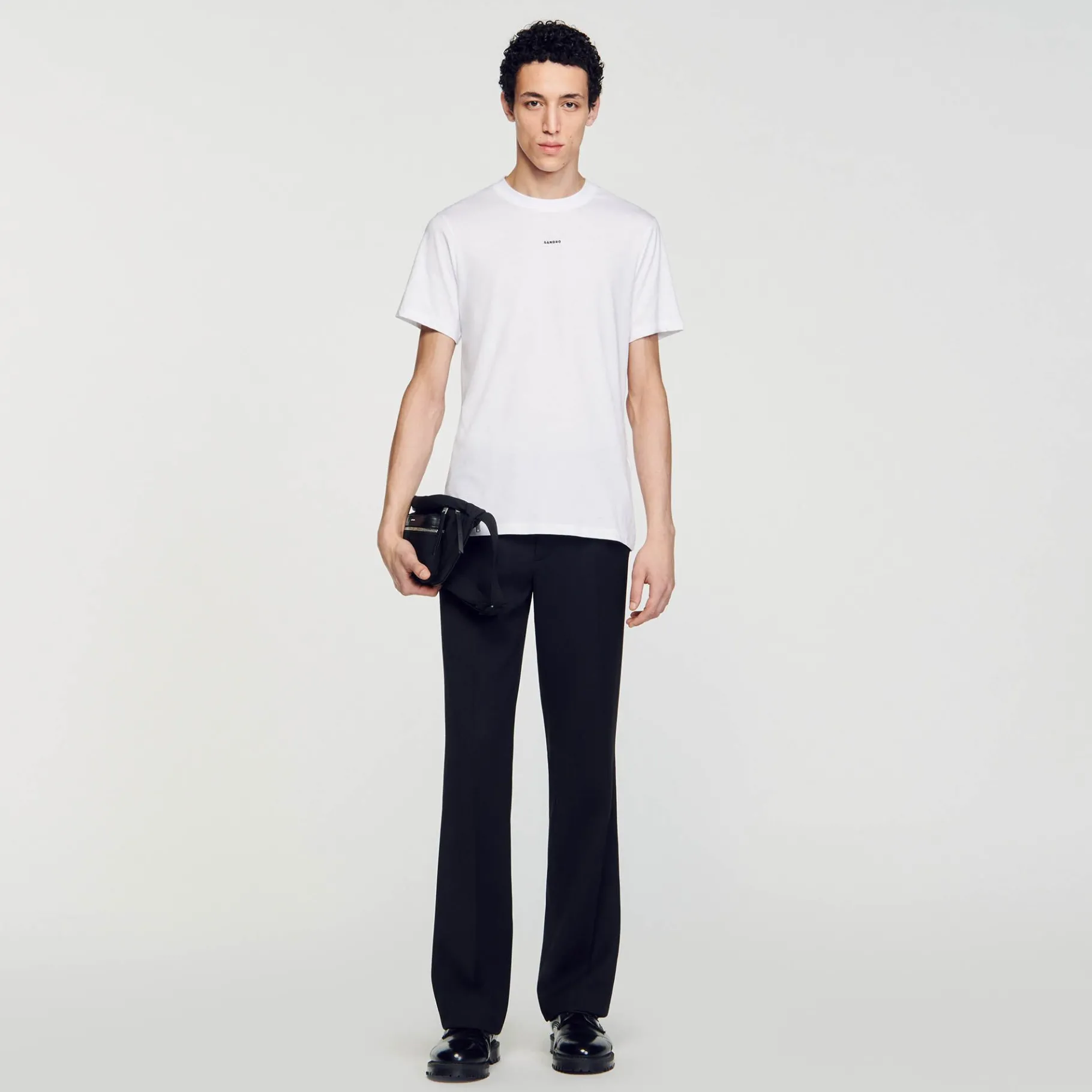 Camiseta De Cuello Redondo Y Manga Corta Con Un Bordado Sandro. Camiseta Sandro Hombre Cuello Redondo De Canalé Manga C…