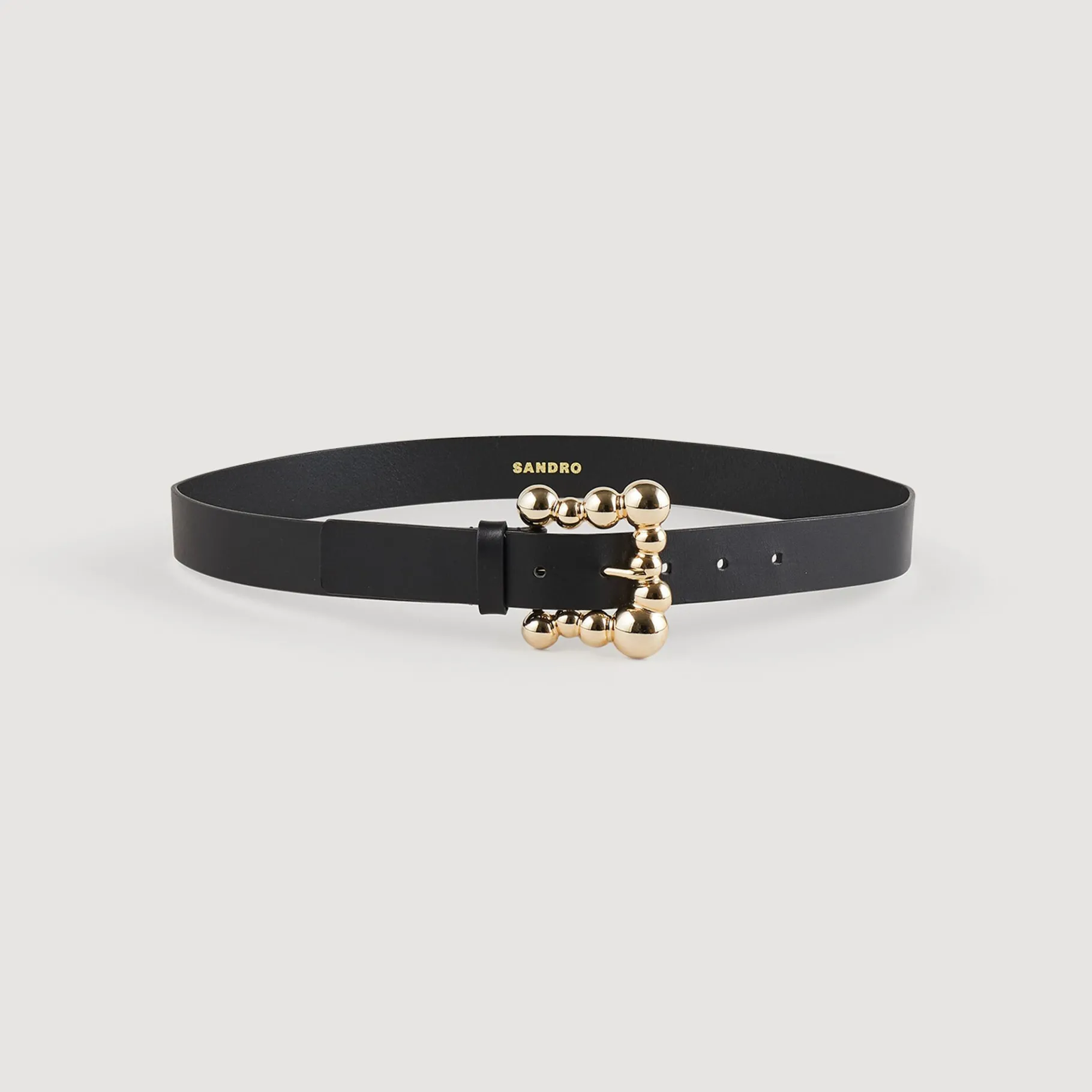 Cinturón Ancho Ajustable De Piel Lisa Con Hebilla Fantasía Dorada. • Cinturón Sandro De Mujer• Piel Lisa• Hebil…