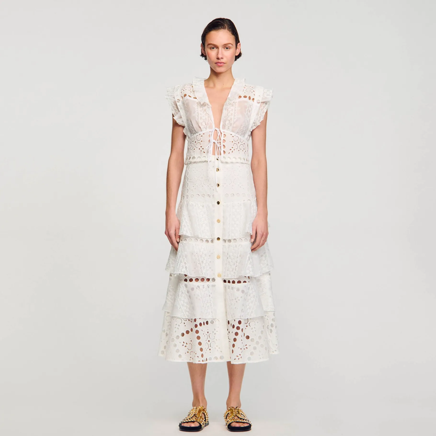 - Falda Larga Con Volantes Sandro Mujer
