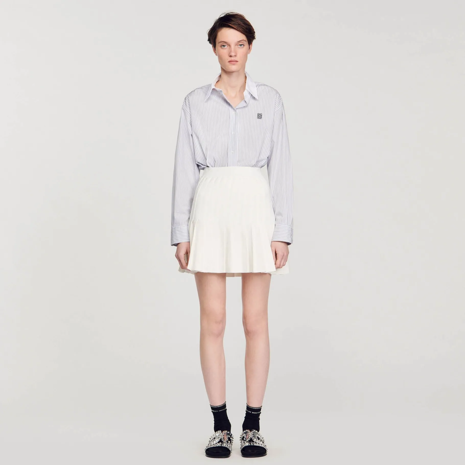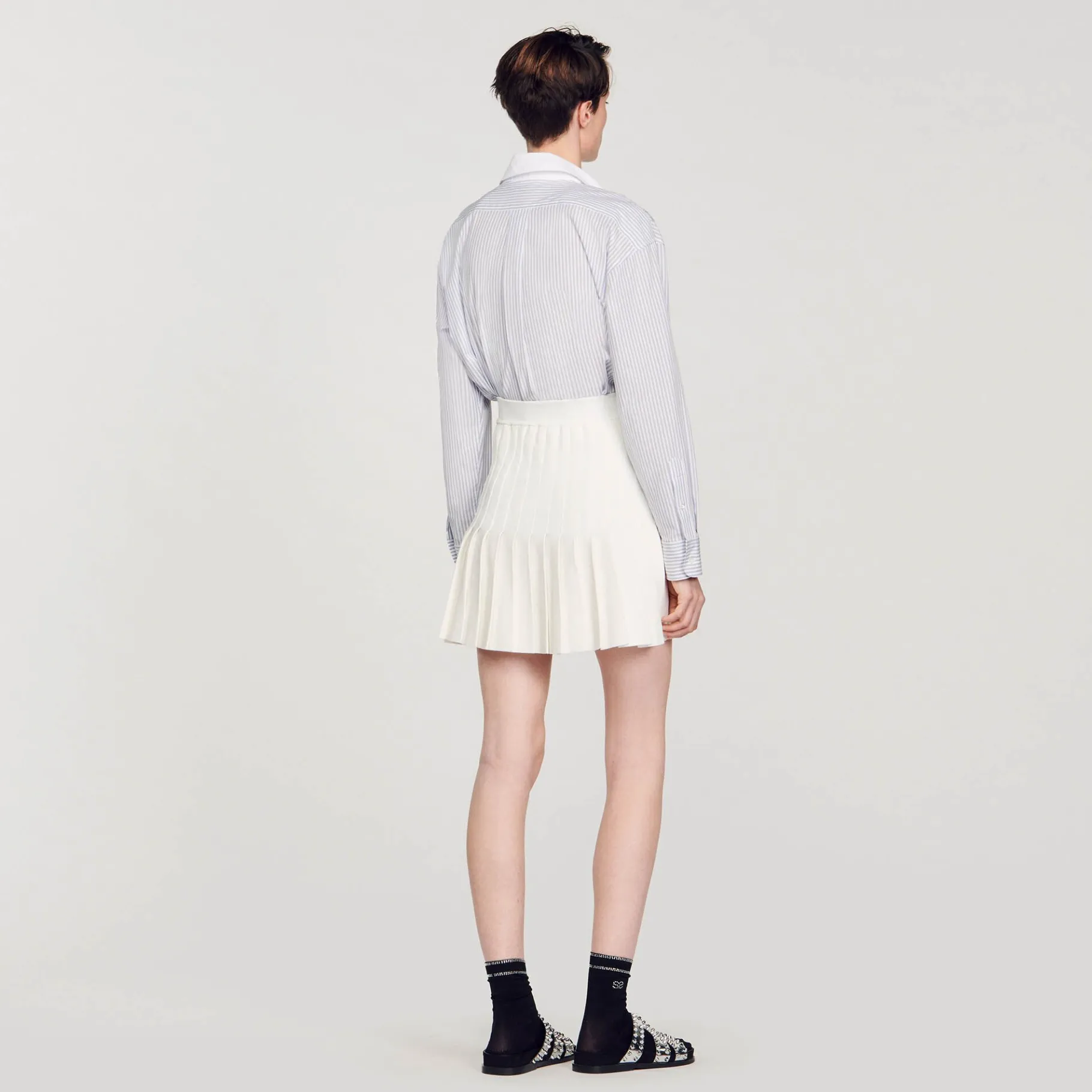Falda Corta De Punto Plisado Ligeramente Acampanado En La Parte Inferior. Falda Corta De Punto Sandro Mujer Plisado En L…