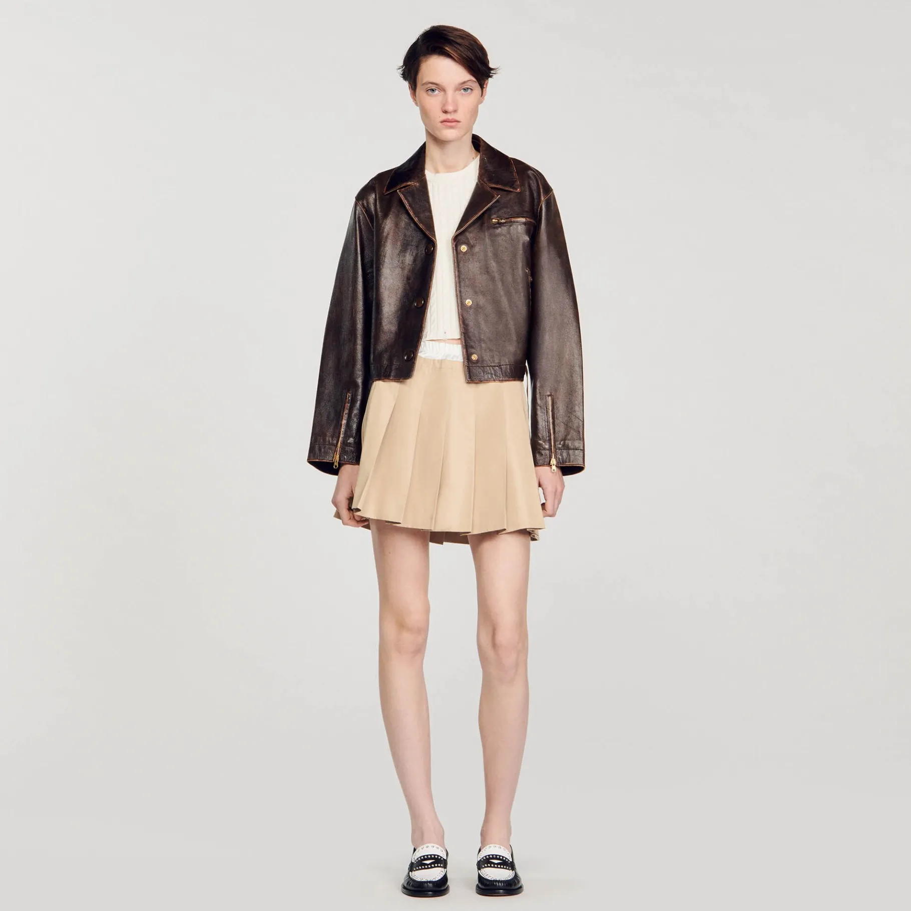 Falda Corta Con Tablas Con Cintura Elástica En Contraste Estilo Pantalón. Falda Corta Sandro Femme Tablas Cintura Elá…