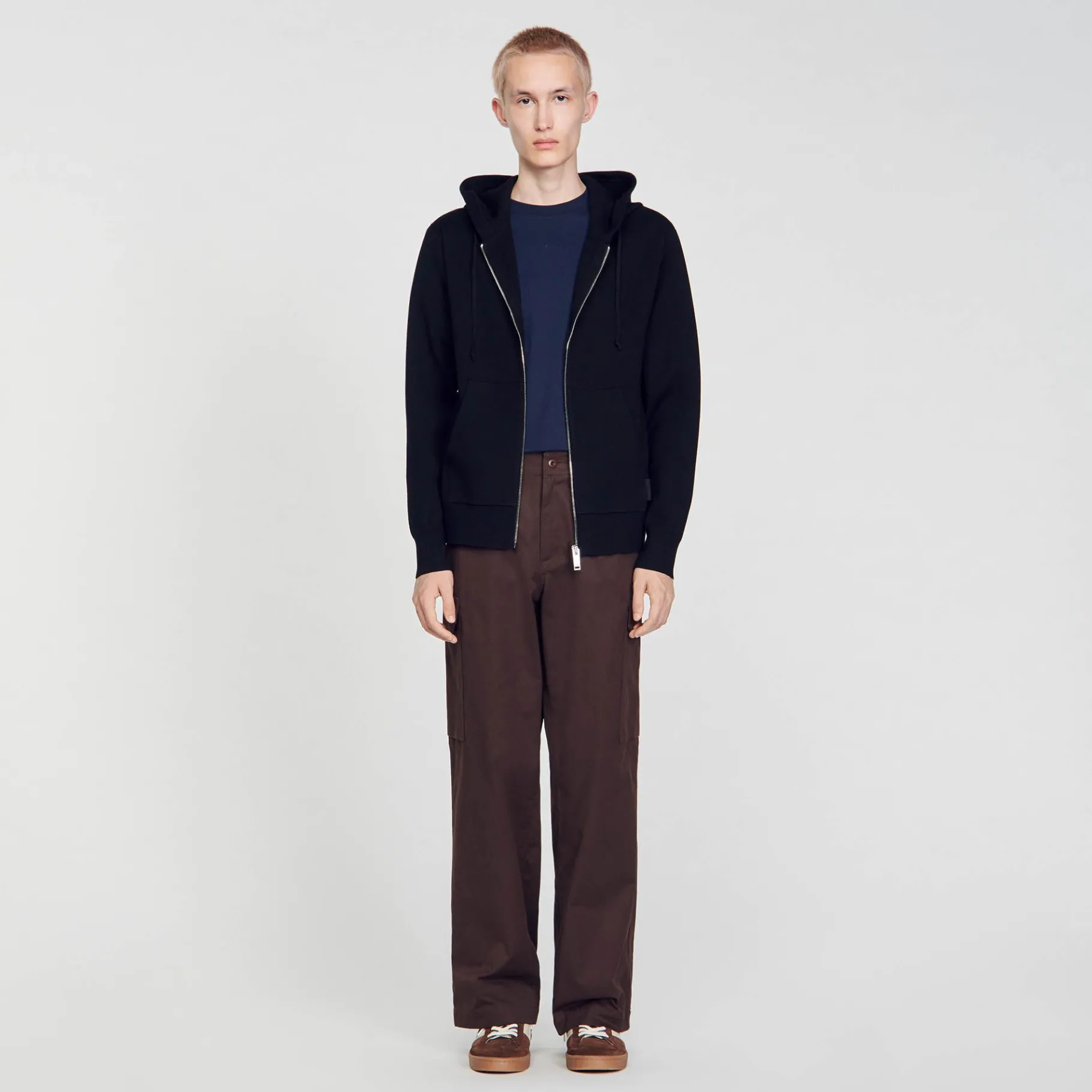 Sudadera Con Capucha Y Cierre De Cremallera Con Manga Larga, Dos Bolsillos Y Adornado Con Una Etiqueta De Cuero Con Relieve Sandro.