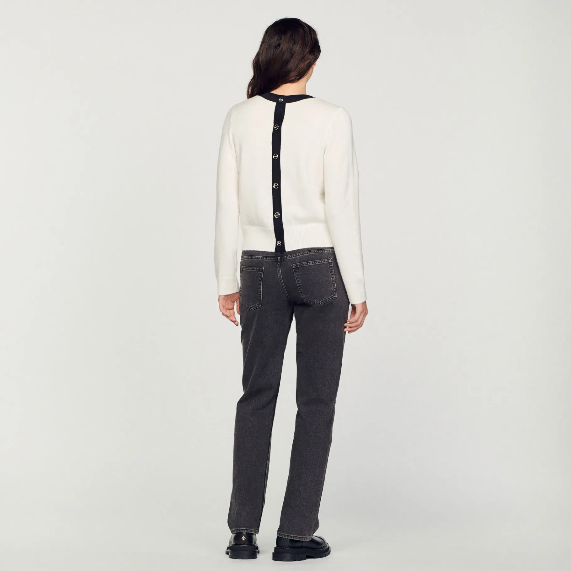 Jersey De Cuello Redondo De Punto Fino Con Bolsillos Y Botonadura En Contraste En La Parte Trasera.