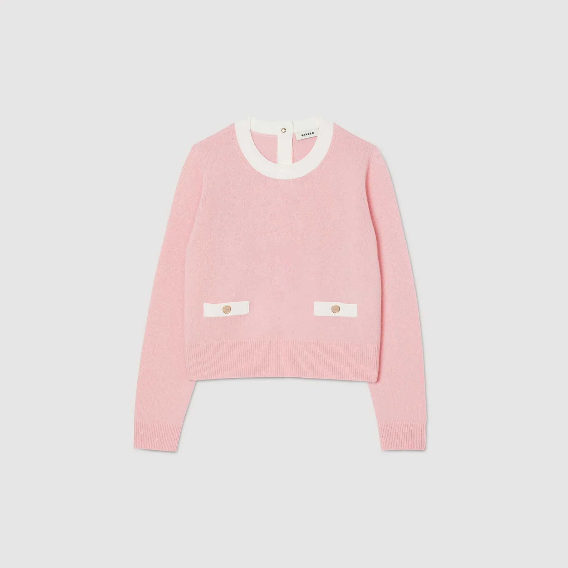 Jersey De Cuello Redondo De Punto Fino Con Bolsillos Y Botonadura En Contraste En La Parte Trasera. • Jersey De Punto …