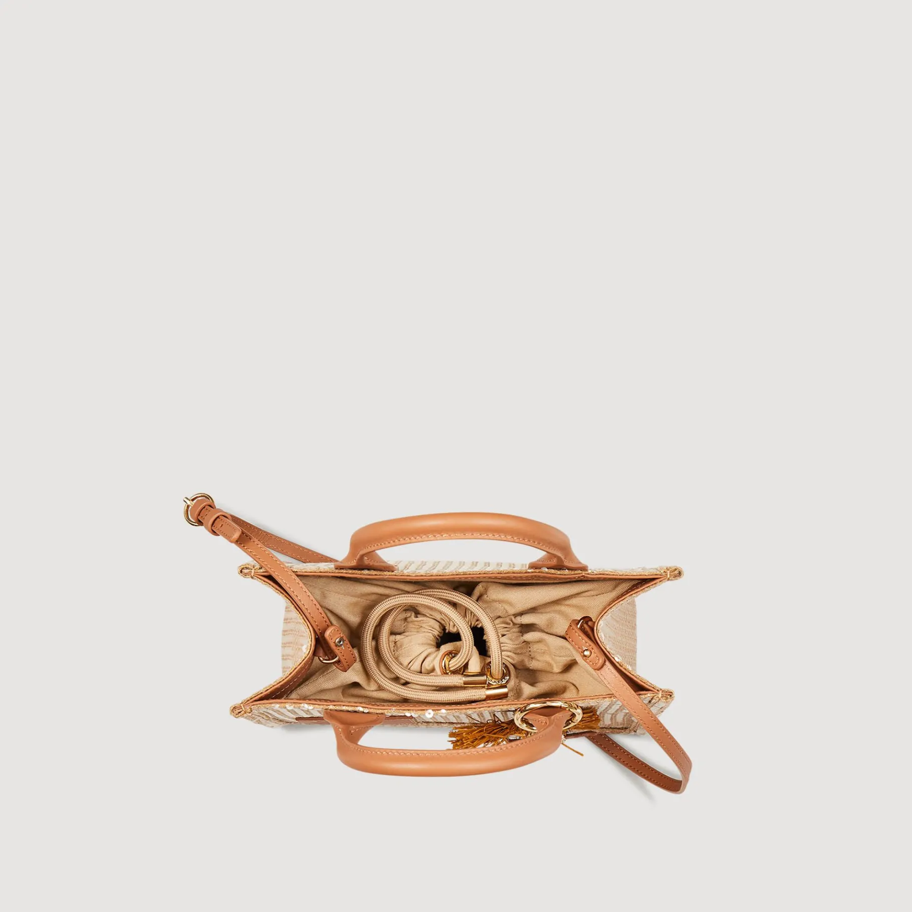 Bolso Pequeño De Tela Decorado Con Lentejuelas Bordadas All Over, Con Etiqueta En Los Mismos Tonos Con Relieve Sandro, Cierre Imantado, Asas Pequeñas, Bolsa Interior, Bandolera Ajustable Y Llavero.