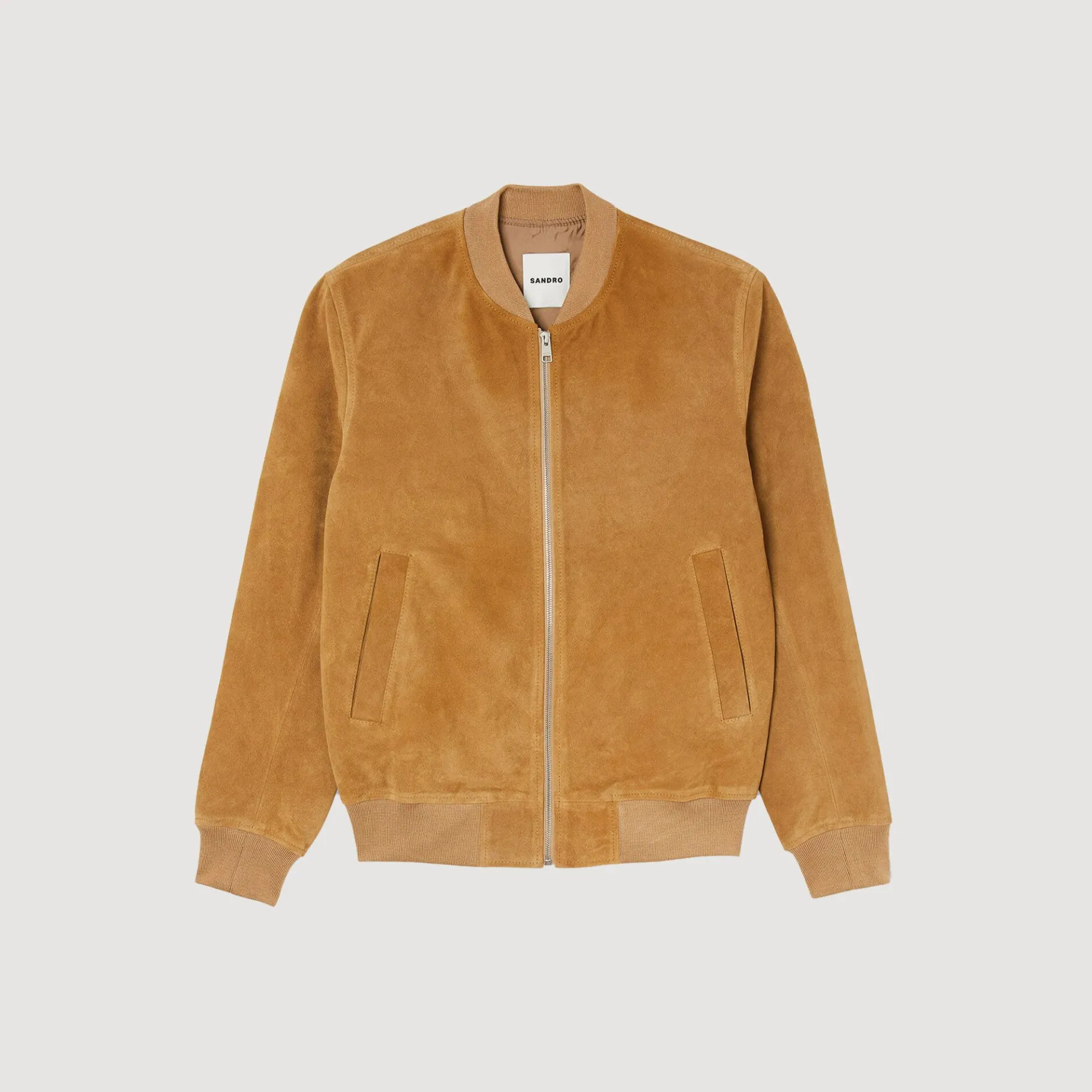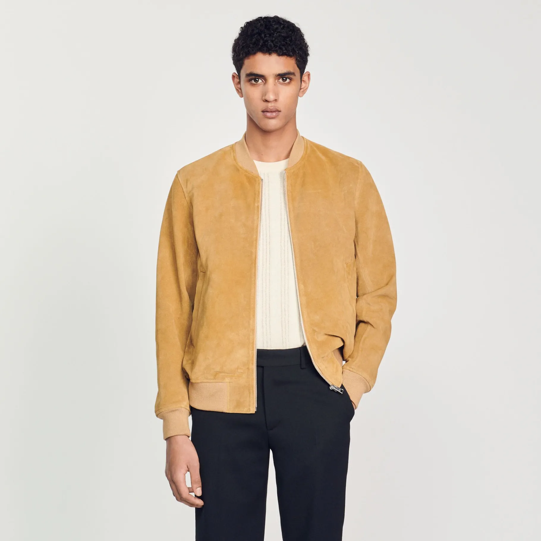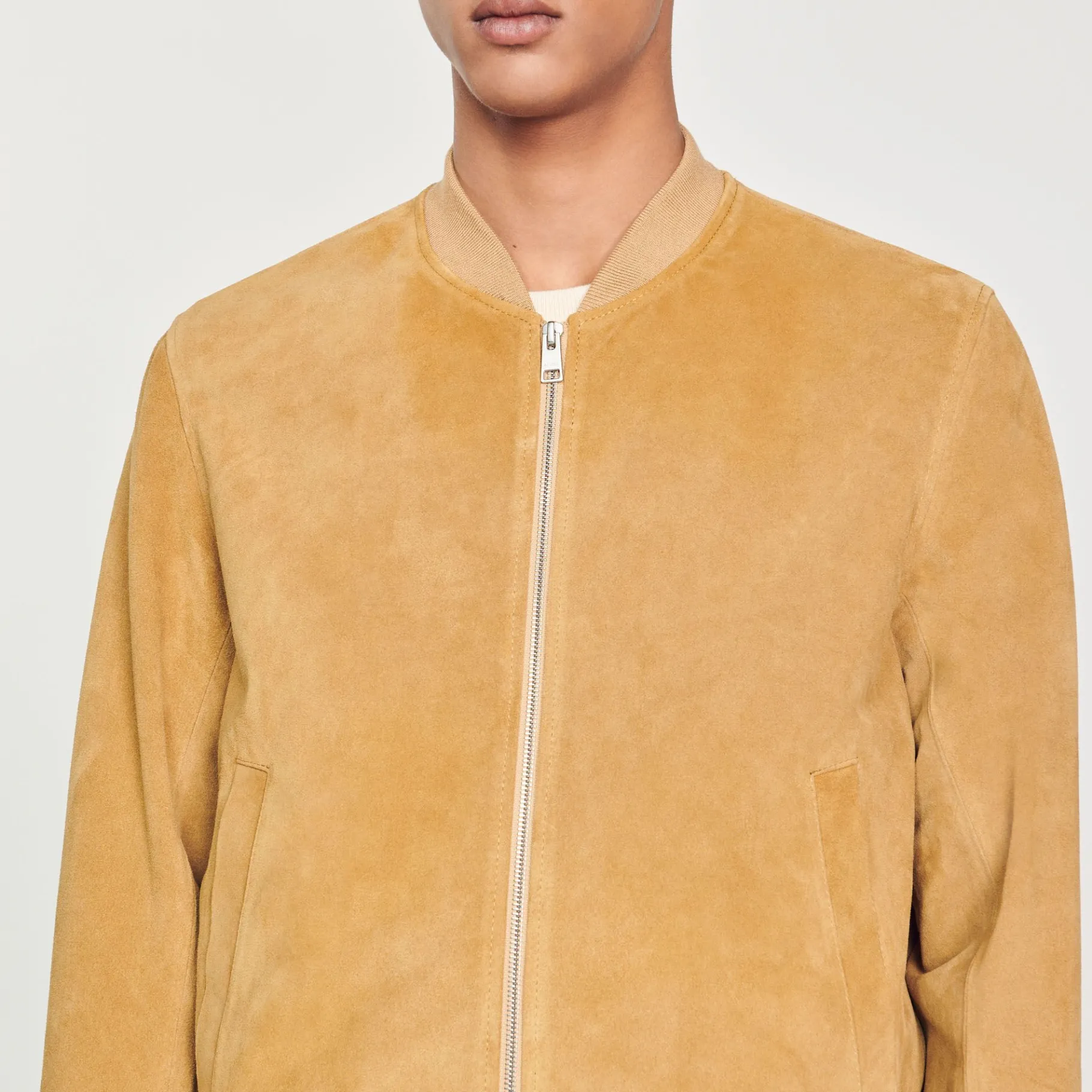 Cazadora De Ante Con Manga Larga, Cierre De Cremallera Y Bolsillos Diagonales.