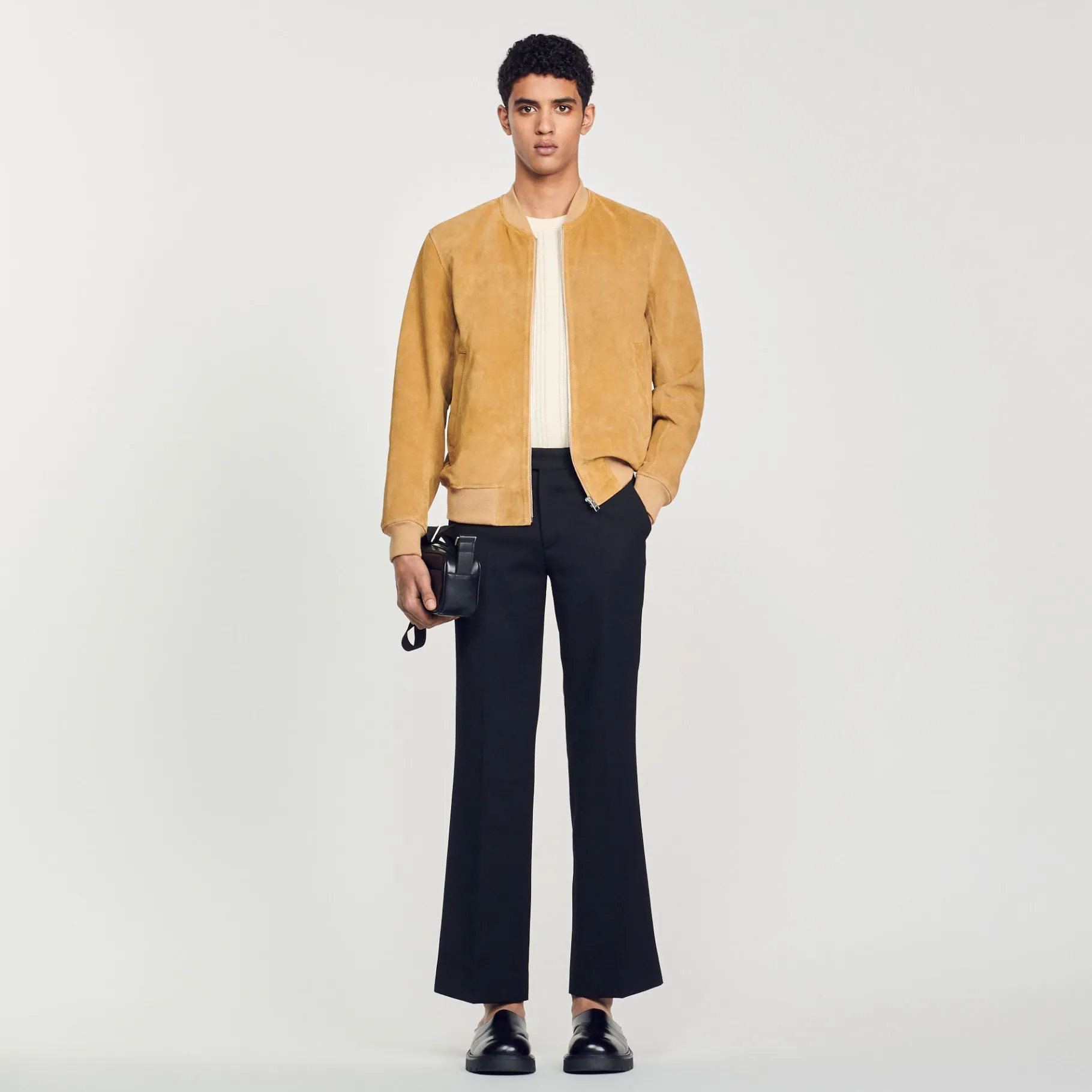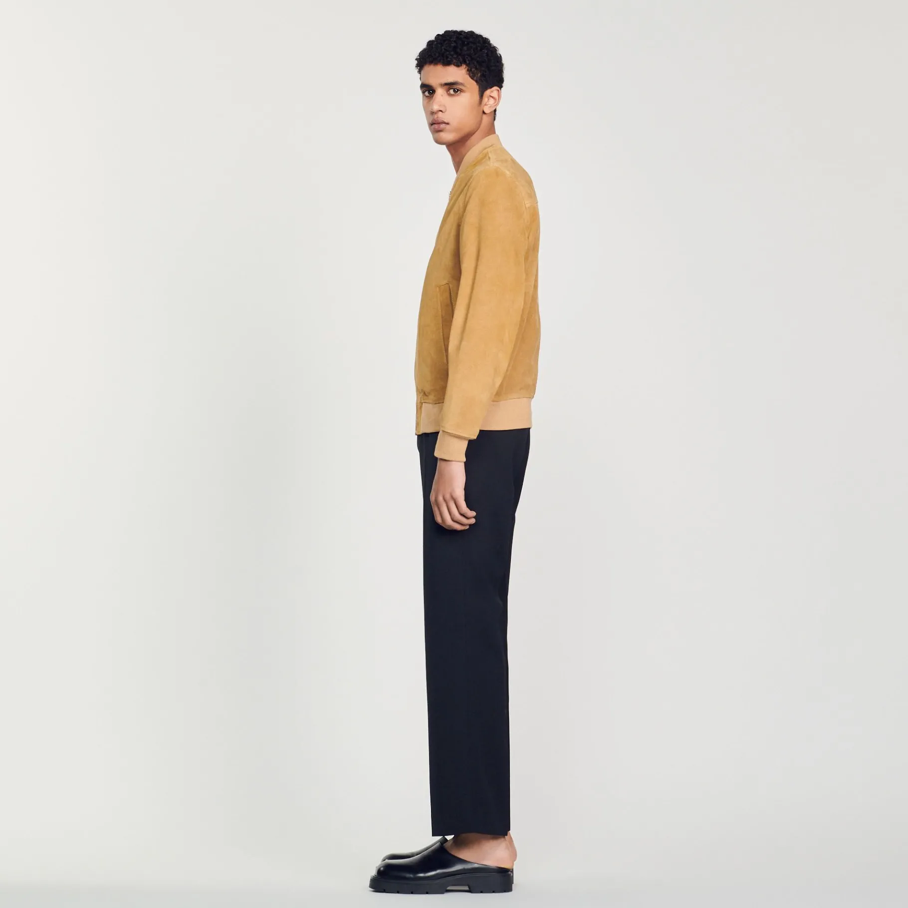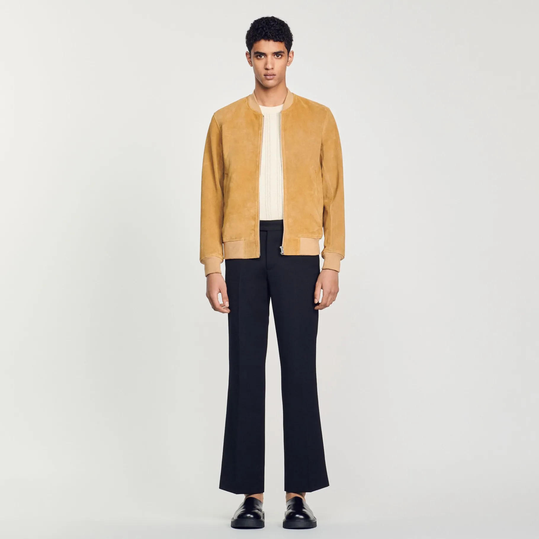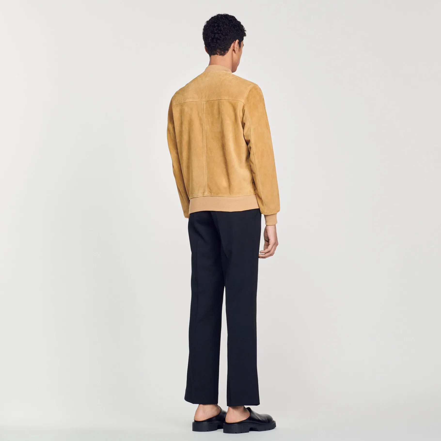 Cazadora De Ante Con Manga Larga, Cierre De Cremallera Y Bolsillos Diagonales.