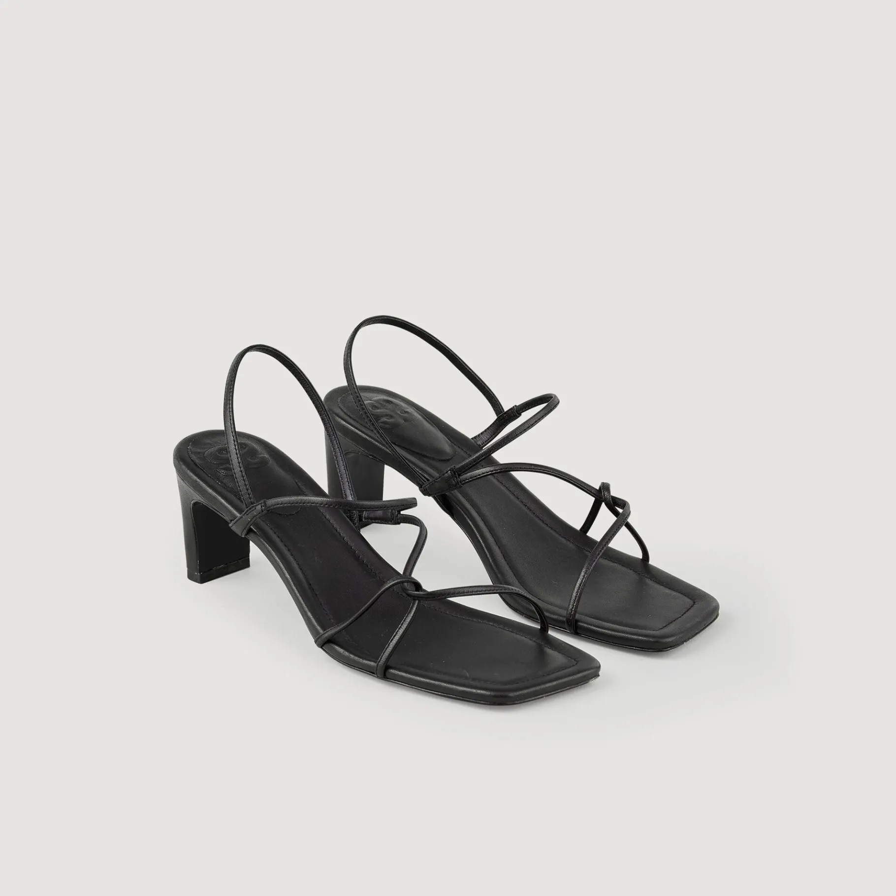 Sandalias De Tacón Ancho De Piel Con Tiras Finas
