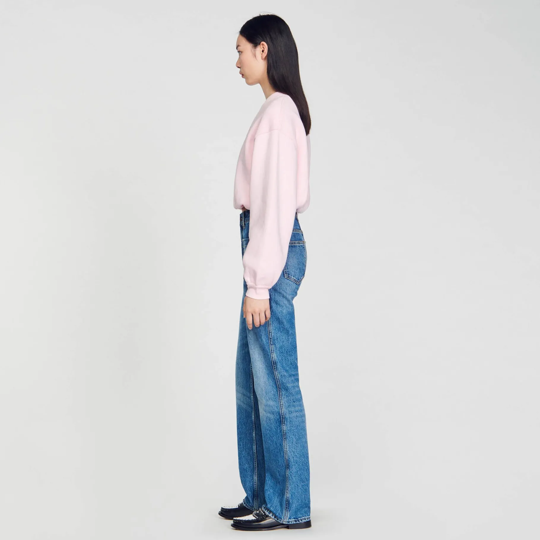 Sudadera Corta Con Fruncido En La Cintura Con Un Cuello Redondo Y Manga Larga Con Bordado De Doble S En El Pecho.