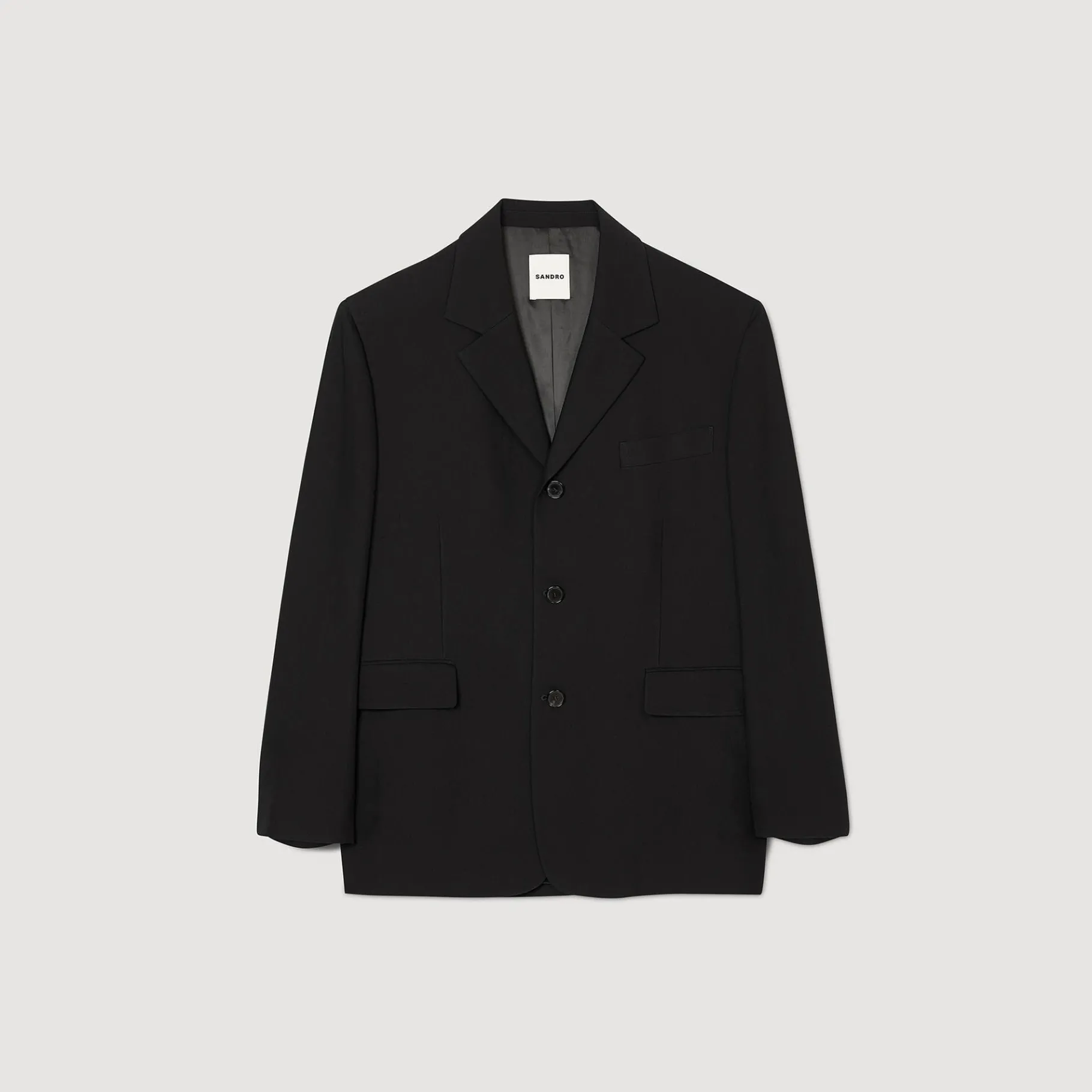 Chaqueta De Traje Sobredimensionada Con Cuello Clásico, Mangas Largas Con Puños Abotonados, Cierre De 3 Botones Y Bolsillos Con Solapa.