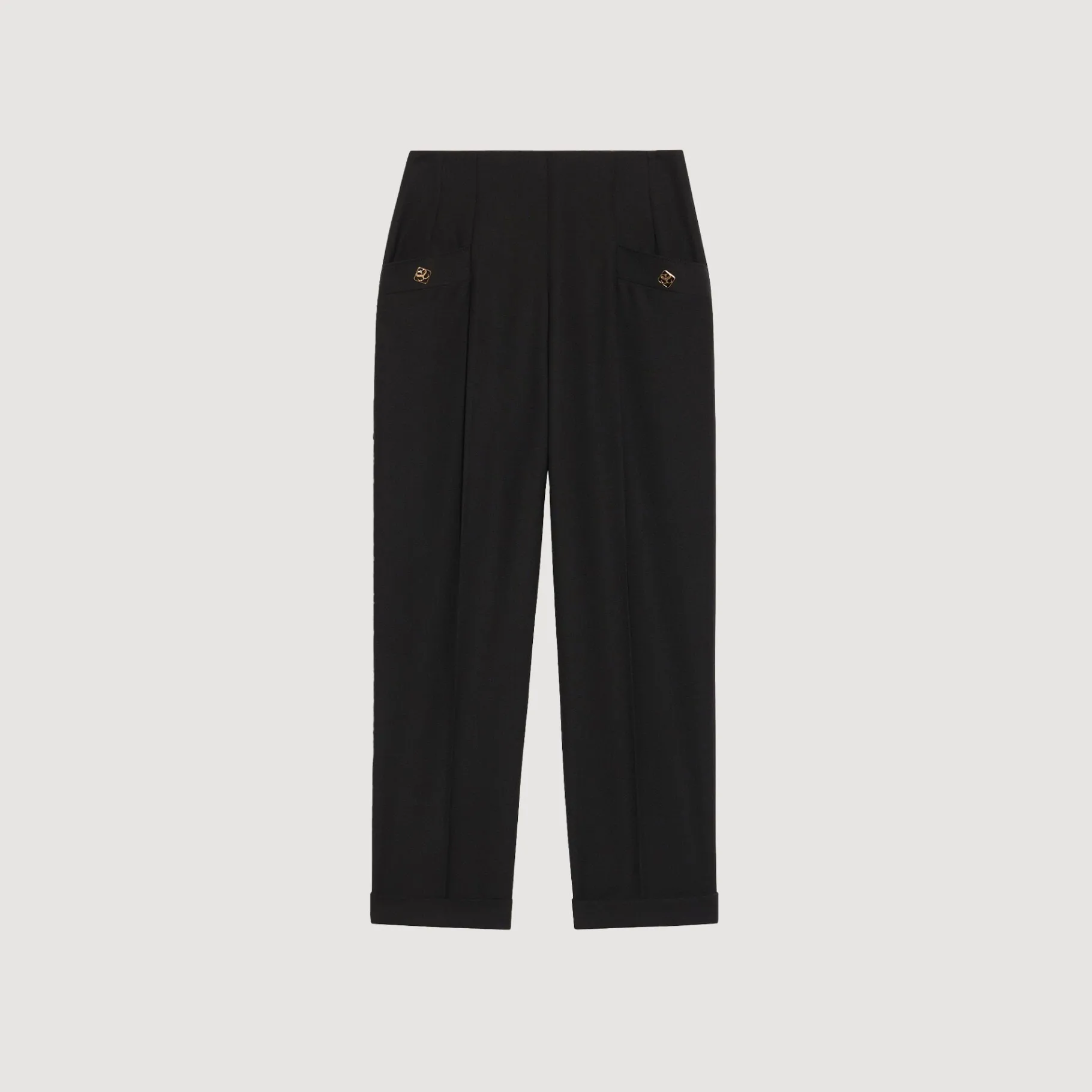 Pantalón De Mujer Sandro• Pantalón De Lana Virgen• Talle Alto• Bolsillos Con Botones Fantasía Doble S En Los La…