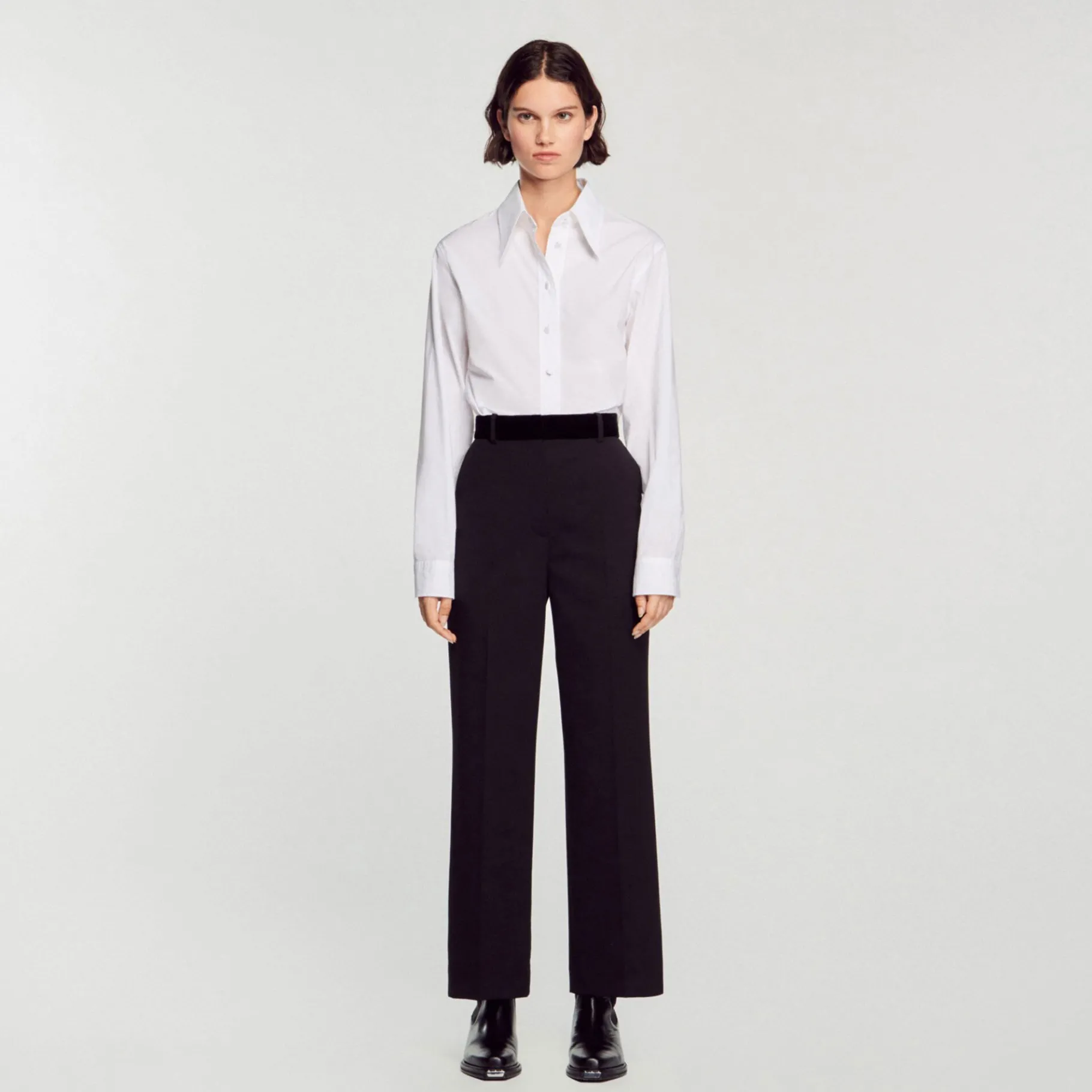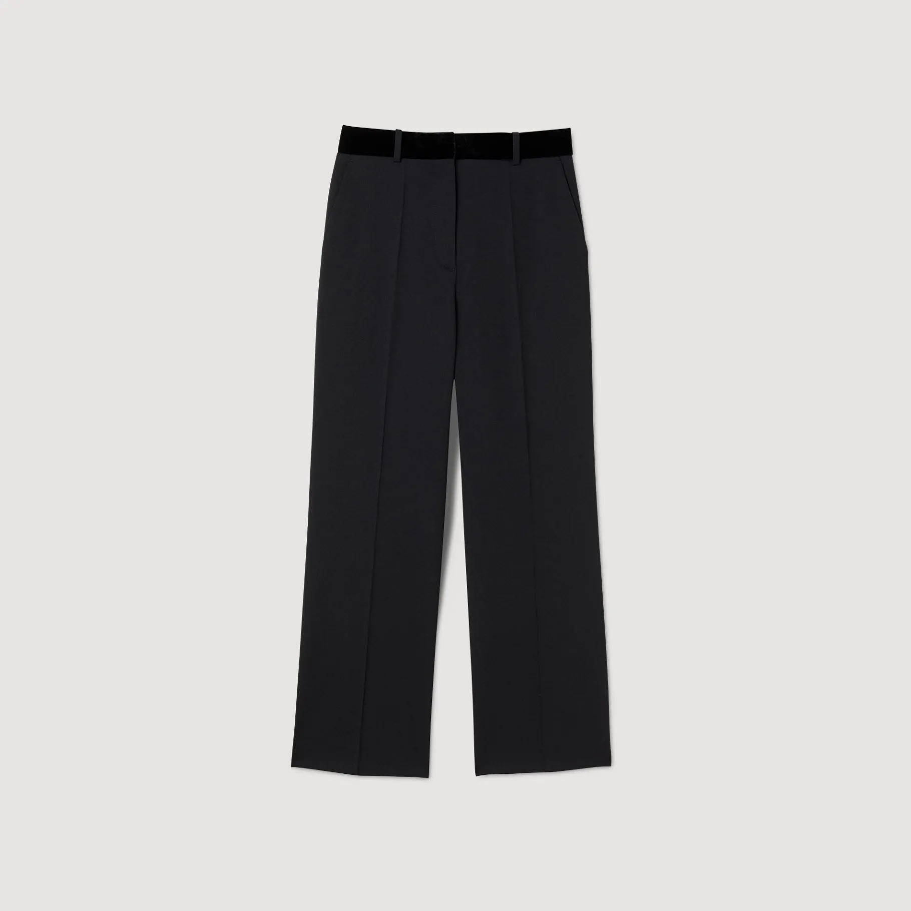 Pantalón Recto Con Cintura De Terciopelo En Contraste, Con Bolsillos Italianos Y Bolsillos De Ojal En La Parte Trasera.