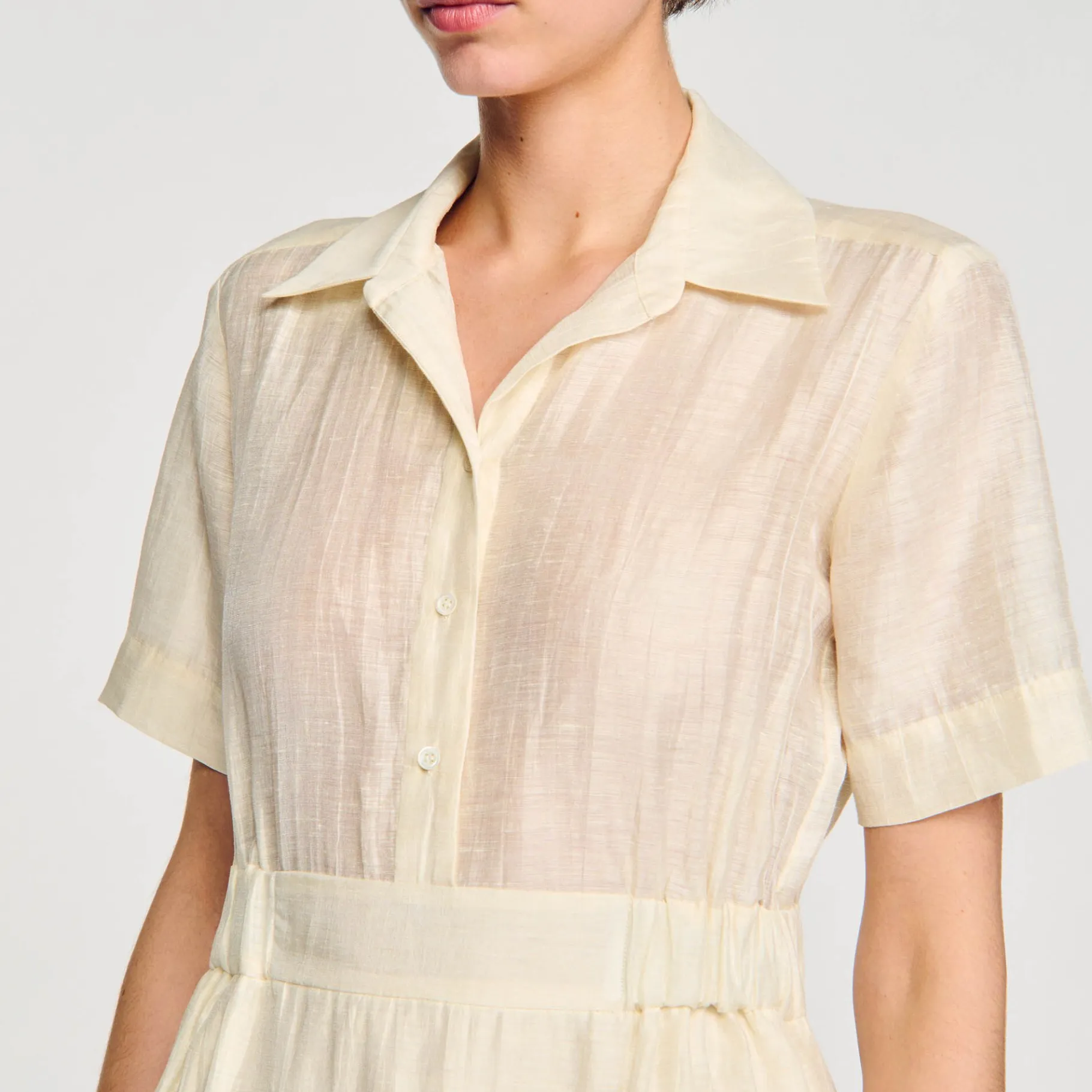Vestido Corto Con Cuello Camisero Y Escote En V, Tapeta De Botones En La Parte Superior Y Falda Evasé Y Avolantada.